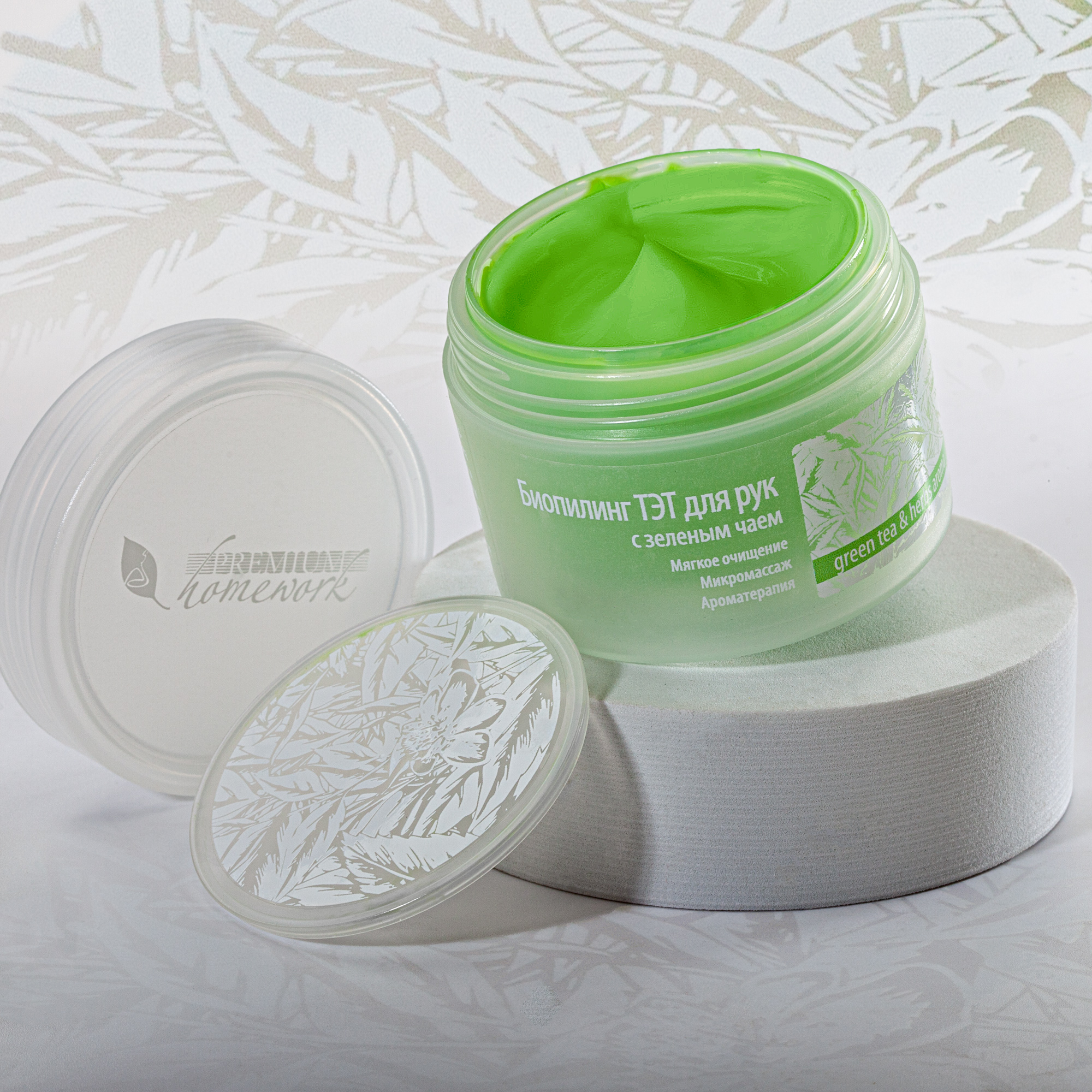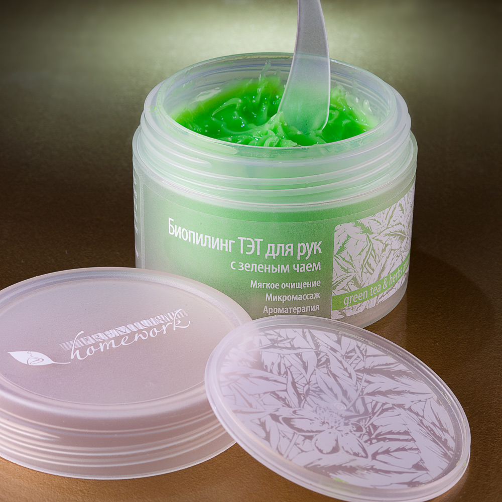 Препарат относится к категории максимально щадящих для ухода за кожей рук, поэтому идеально подходит для чувствительной, тонкой, сухой и увядающей кожи. Зеленый чай и комплекс травяных экстрактов реактивность кожи, замедляют старение клеток. Пилинг-скатка деликатно заботиться о коже рук и дарит необыкновенную нежность.